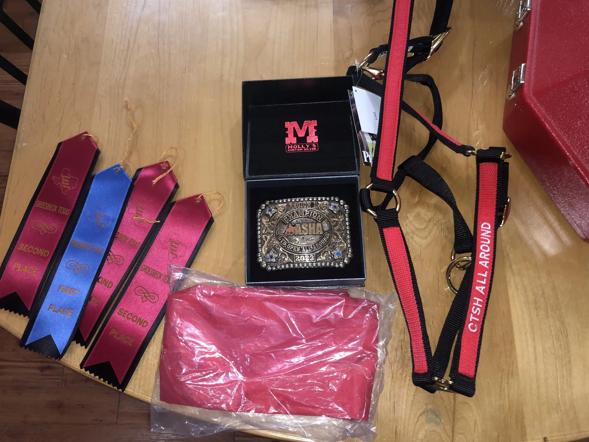 As she set her goals for 2015, Mary planned to learn on Shake Your Budha and then horse up the next year. Over time and weekly lessons with trainer, Mary began to think it would be nice to win a buckle in cutting. Little did she know that she would exceed her expectations as Mary went on to win 8 buckles that year, a saddle, $2500 World Champion, $1000 Reserve World Champion, Rookie of the Year, Horse of the Year.